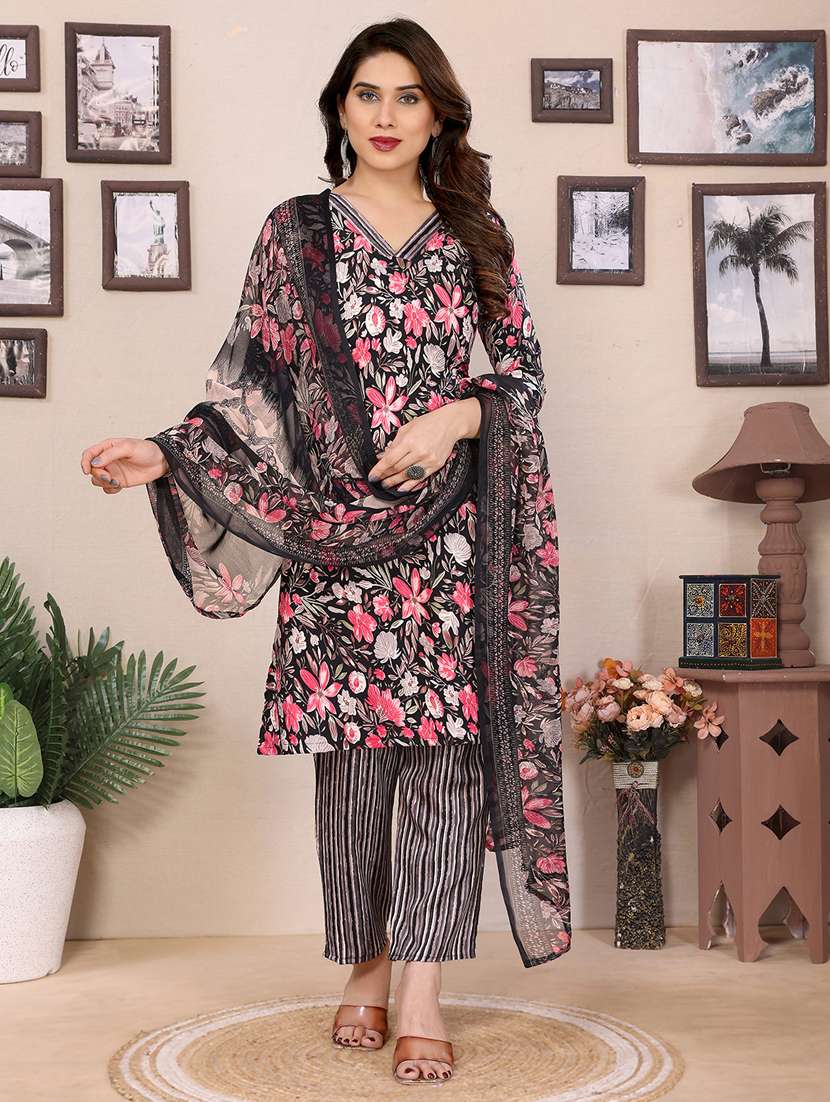 - Look ultra gorgeous in unstitched suits from Anand Sarees and grab these beautiful suits in black colour.