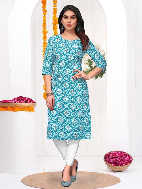 - » women printed three quarter sleeve straight kurta