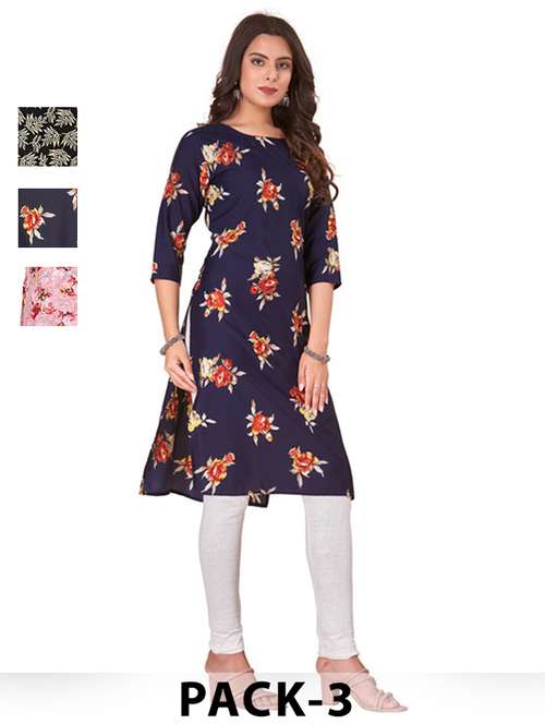 - » women pack of 3 printed straight kurta