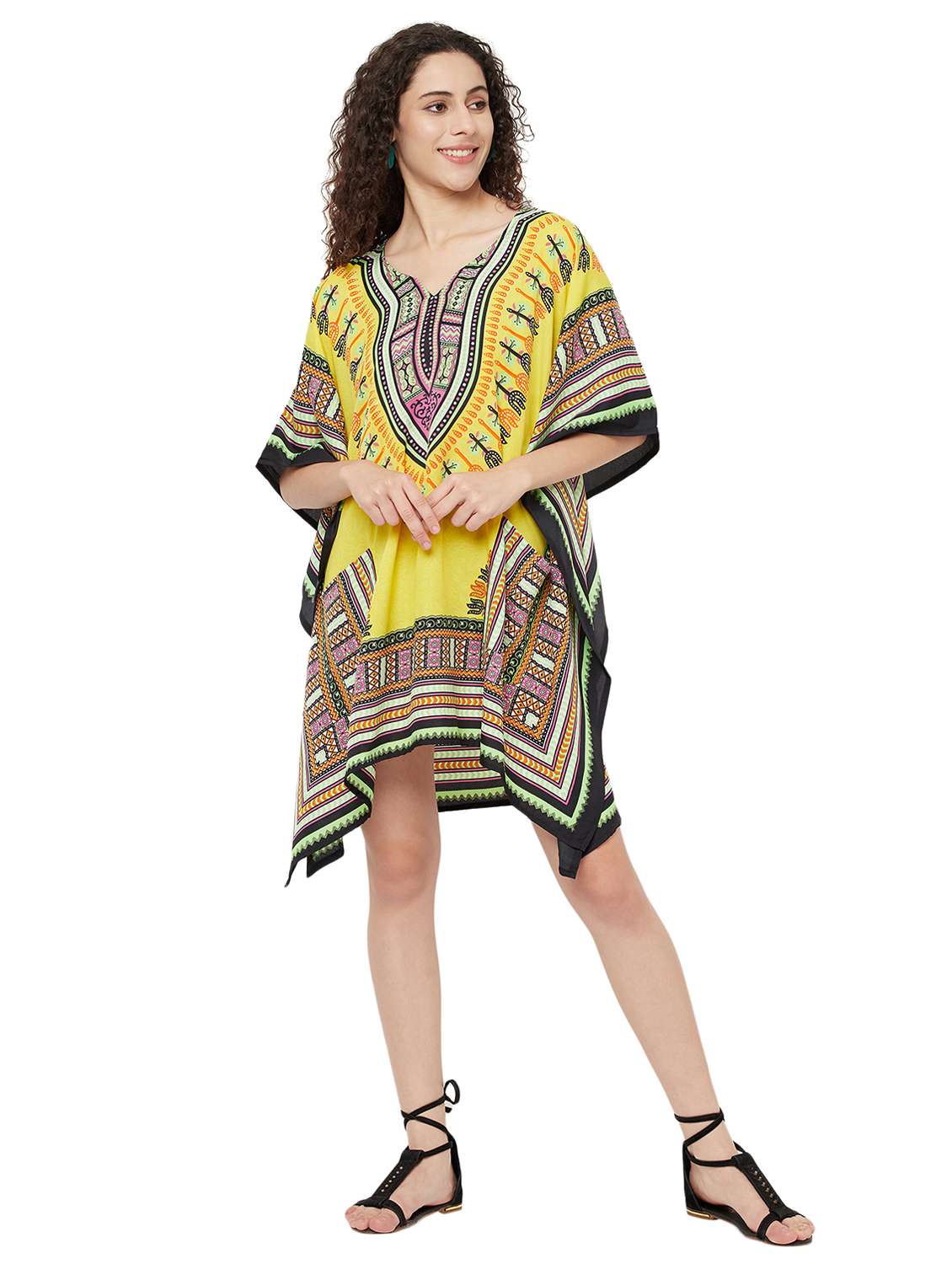 women yellow crepe kaftan dress