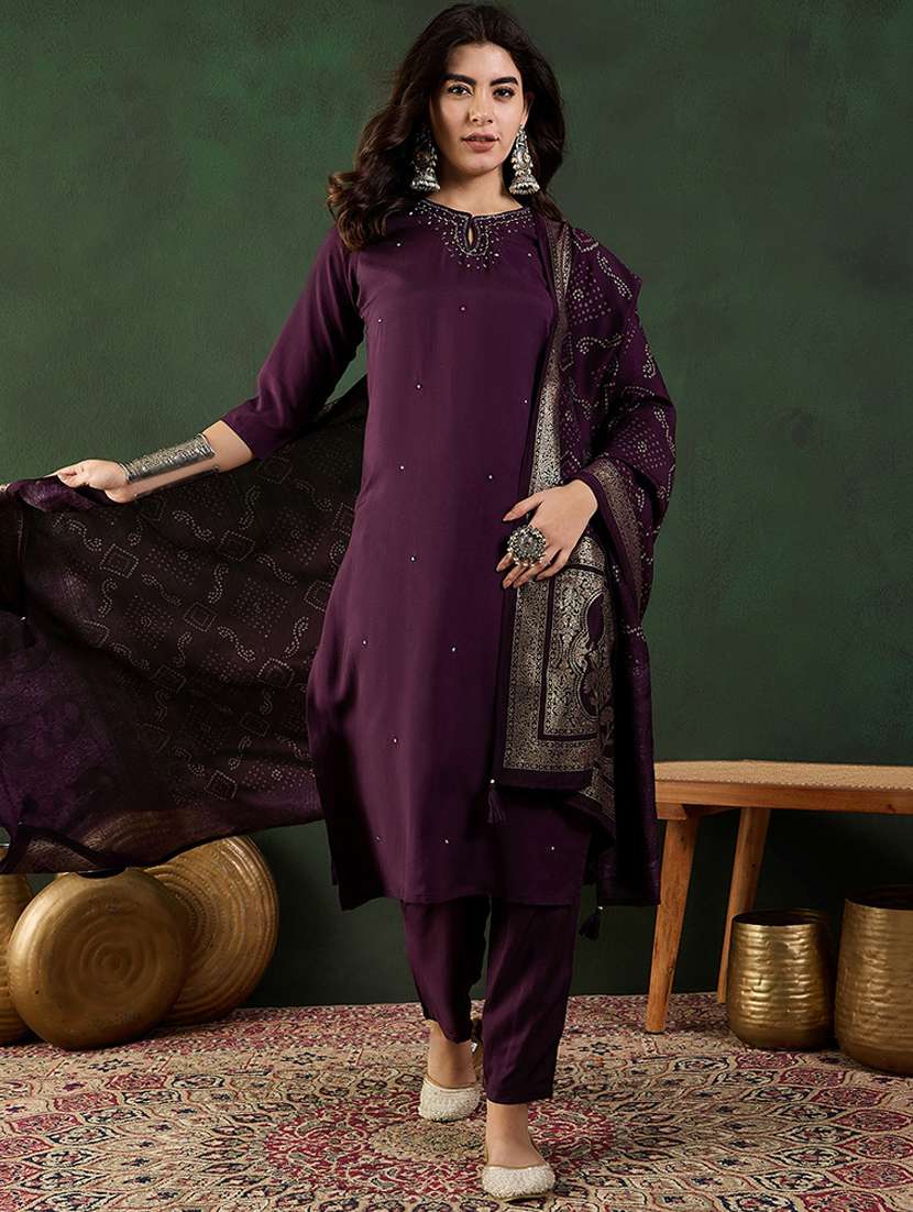 - Find gorgeous sets of ethnic wears in trending designs in purple colors suitable for festive wear of occasions.