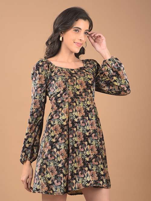 - Dress up in a soothing pattern and don this dress made of polyester material.
