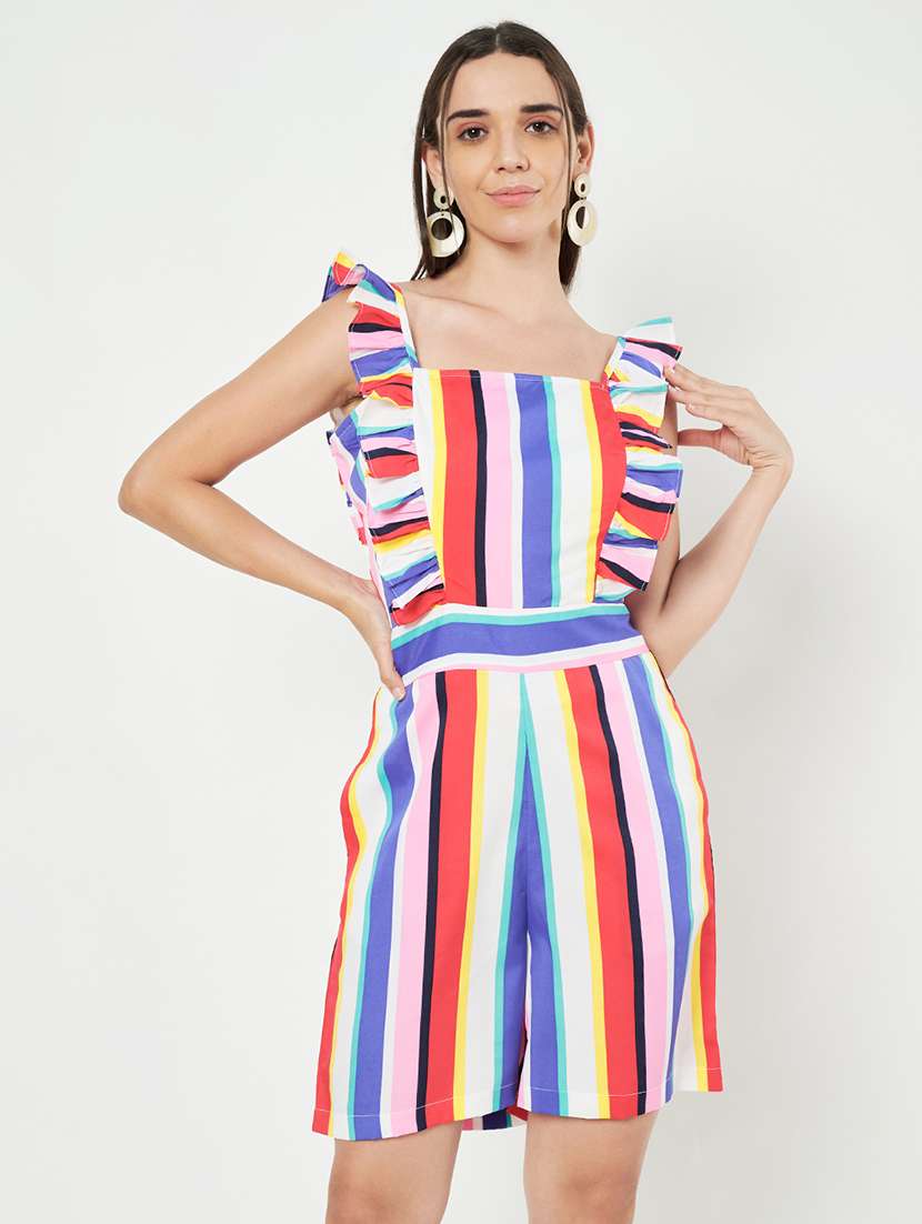 - » women printed ruffle detailed sleeveless romper