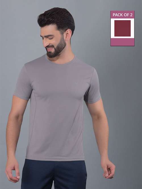- » men pack of 2 solid regular fit short sleeves sports t-shirts