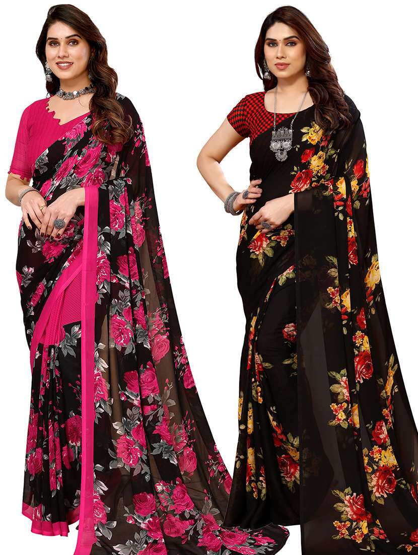 pack of 2 printed casual wear sarees with blouse