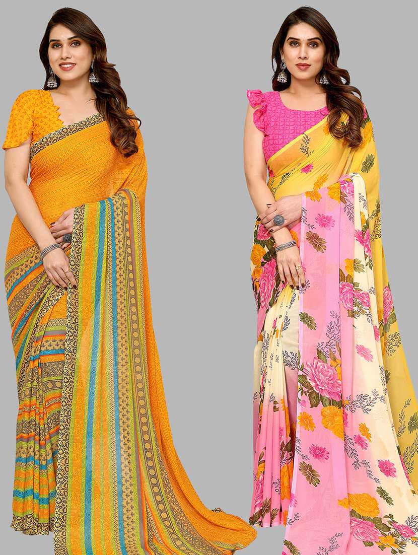pack of 2 printed casual wear sarees with blouse - 21402403 - Very Small Image - 1