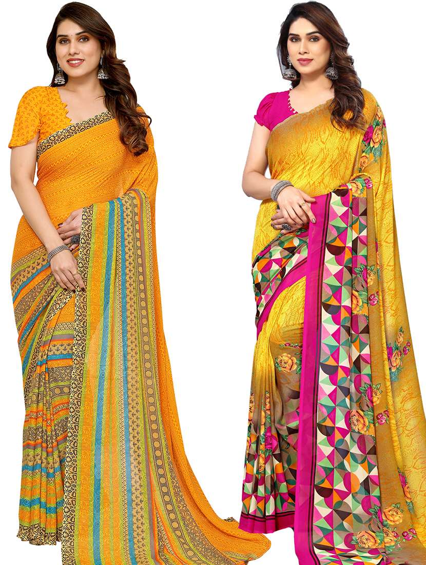 pack of 2 printed casual wear sarees with blouse - 21402431 - Very Small Image - 1