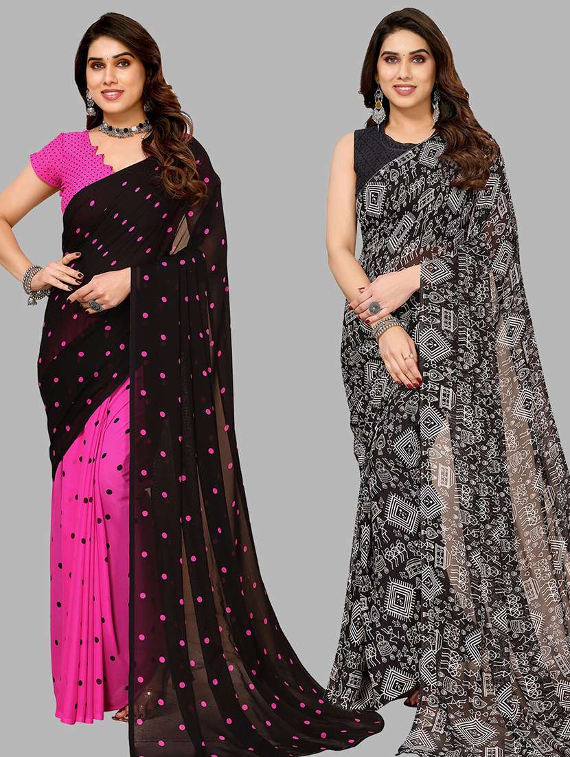 pack of 2 printed casual wear sarees with blouse