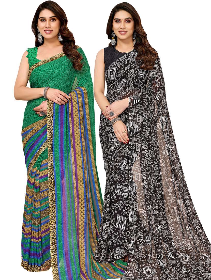 pack of 2 printed casual wear sarees with blouse - 21402504 - Very Small Image - 1
