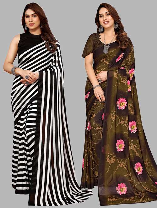 pack of 2 printed casual wear sarees with blouse - 21402549 - Very Small Image - 1
