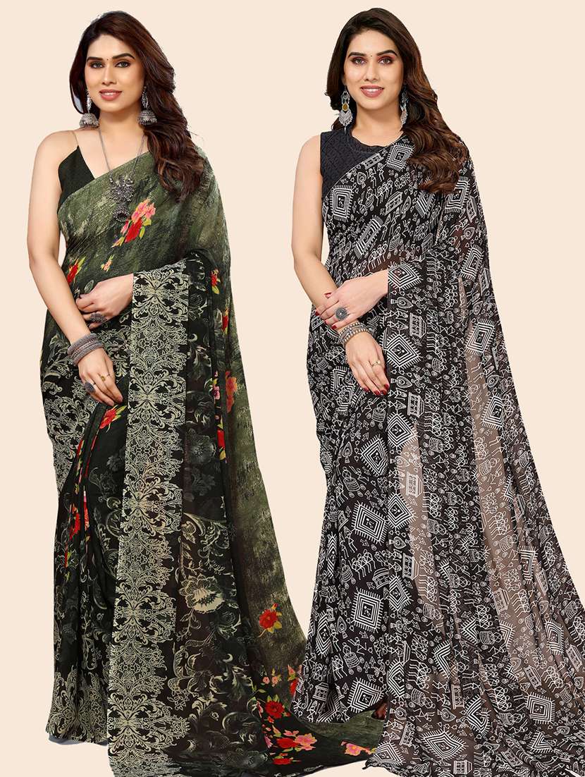 pack of 2 printed casual wear sarees with blouse - 21402565 - Very Small Image - 1