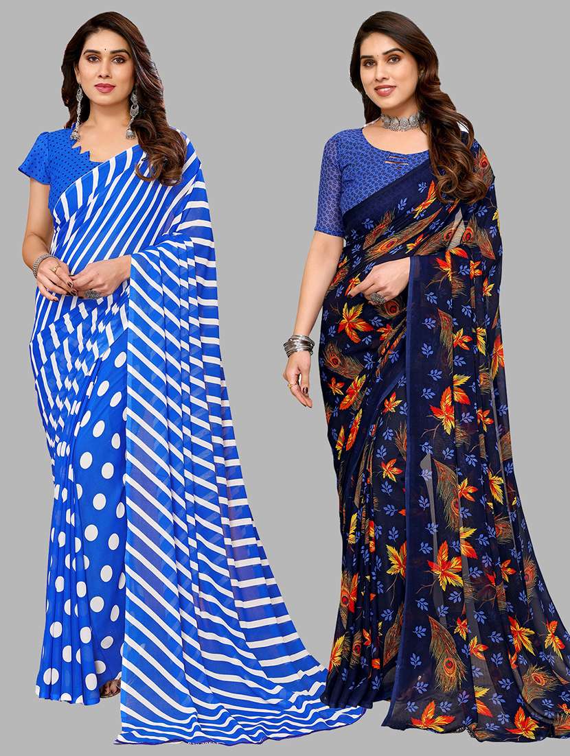 women pack of 2 printed saree with blouse