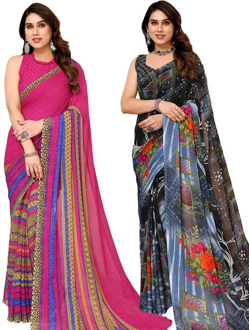 pack of 2 printed casual wear sarees with blouse - 21402595 - Very Small Image - 1