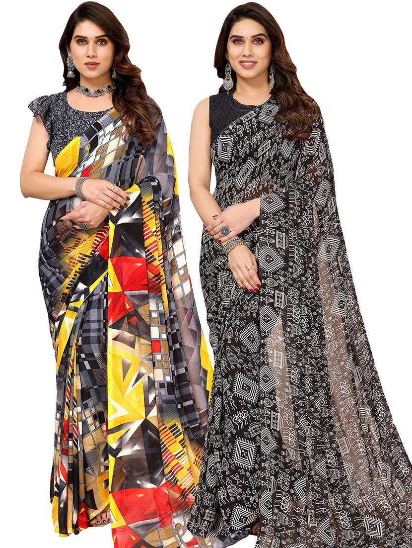 pack of 2 printed casual wear sarees with blouse - 21402602 - Very Small Image - 1
