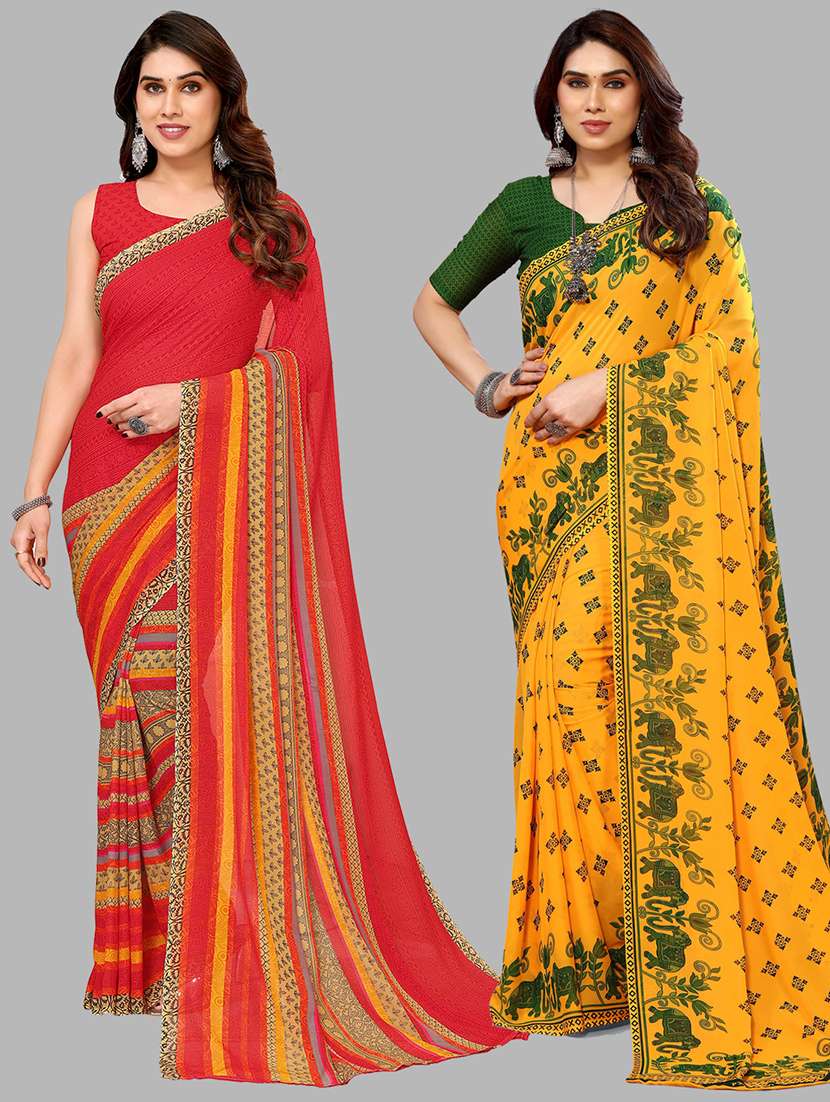 pack of 2 printed casual wear sarees with blouse - 21402608 - Very Small Image - 1