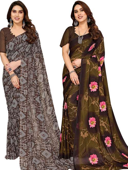 pack of 2 printed casual wear sarees with blouse