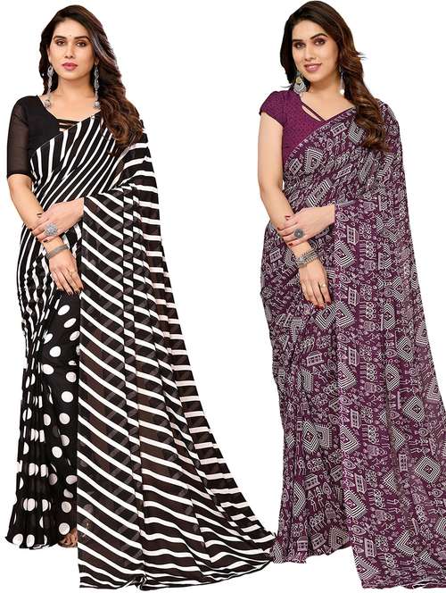 pack of 2 printed casual wear sarees with blouse - 21402674 - Very Small Image - 1