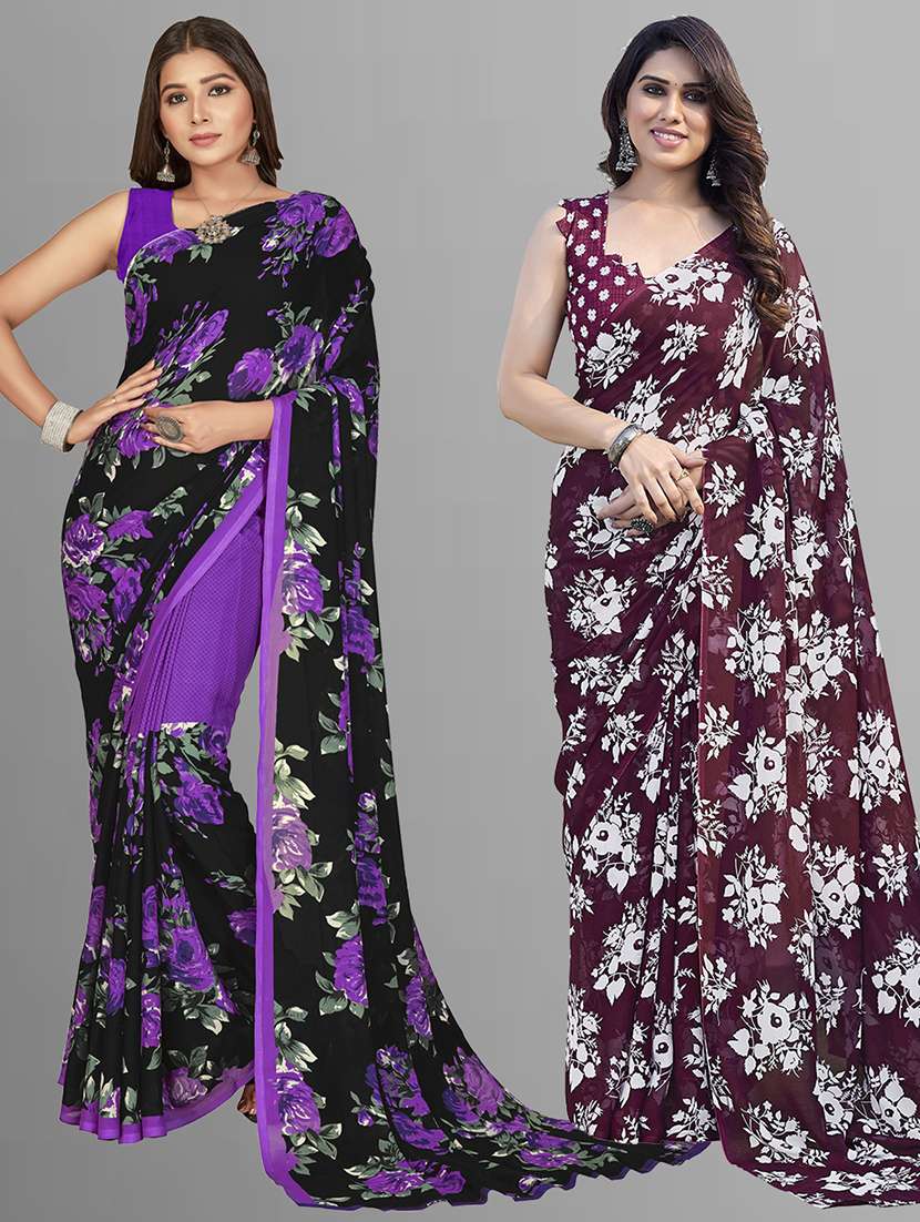 pack of 2 printed casual wear sarees with blouse
