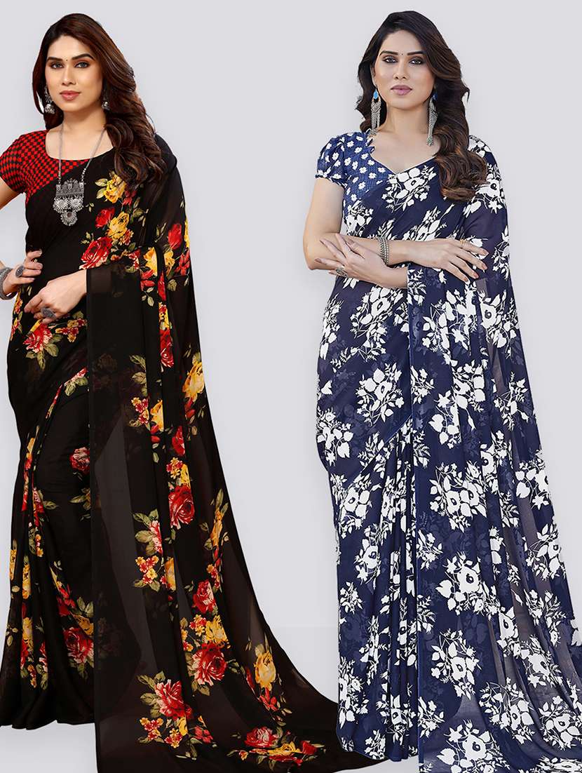 pack of 2 printed casual wear sarees with blouse