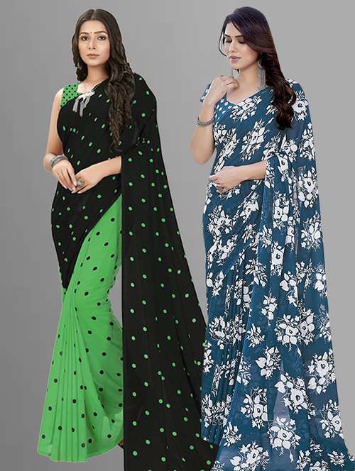 pack of 2 printed casual wear sarees with blouse - 21402716 - Very Small Image - 1