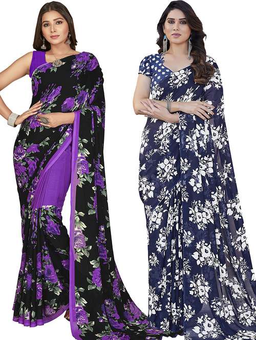 pack of 2 floral printed casual wear sarees with blouse - 21402749 - Very Small Image - 1