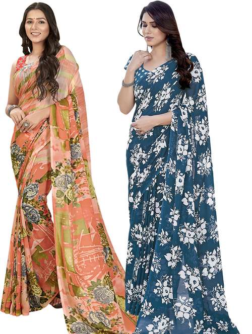 women pack of 2 printed saree with blouse - 21402820 - Very Small Image - 1