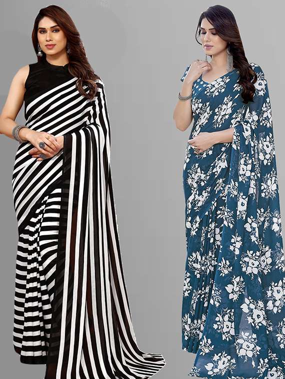 pack of 2 printed casual wear sarees with blouse - 21402828 - Very Small Image - 1