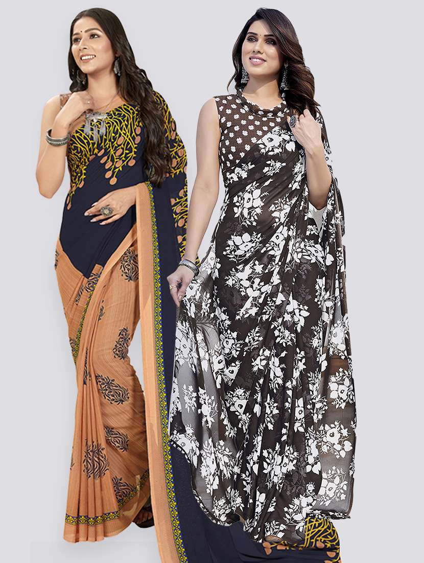 pack of 2 printed casual wear sarees with blouse - 21402845 - Very Small Image - 1