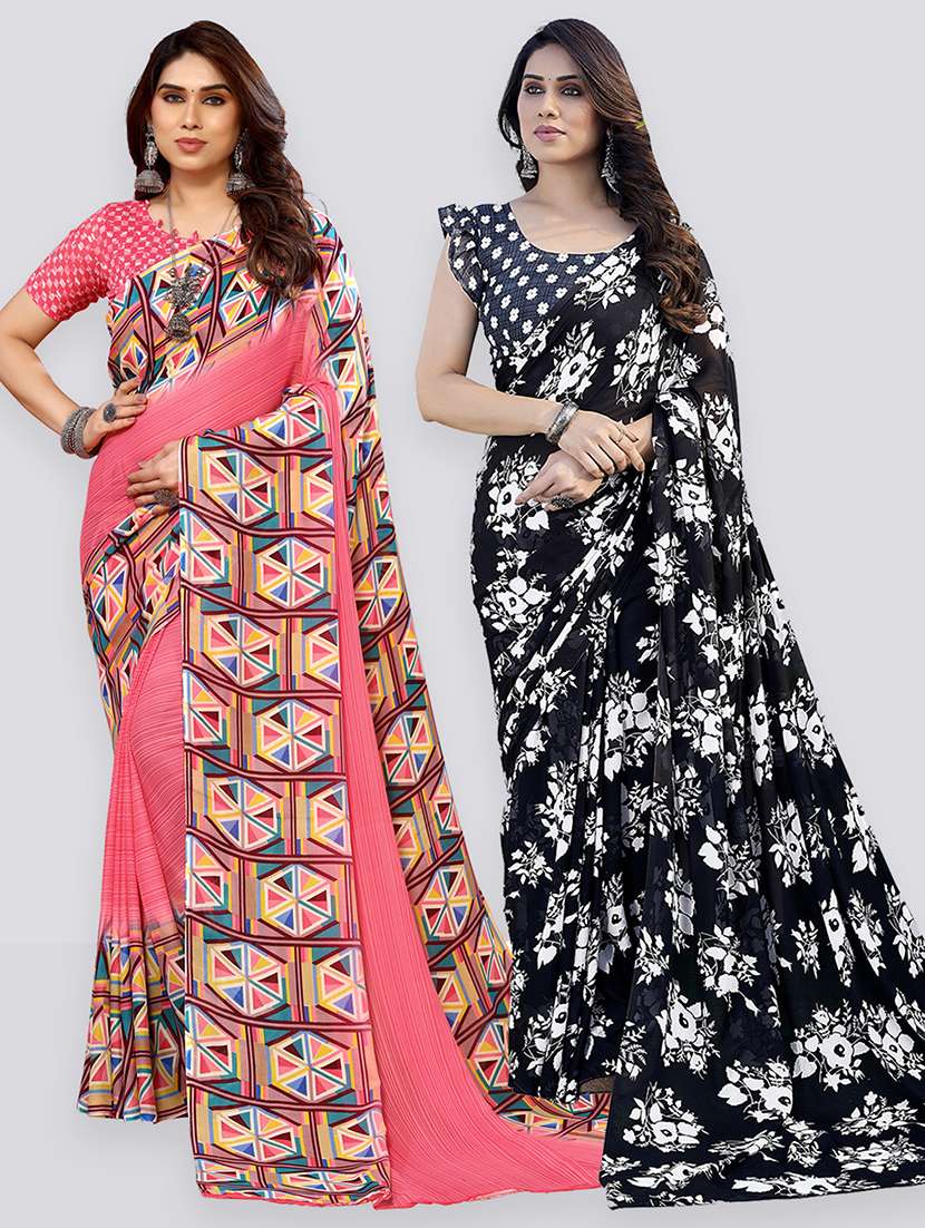 pack of 2 printed casual wear sarees with blouse