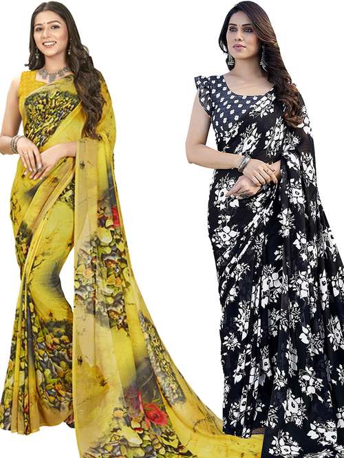 pack of 2 printed casual wear sarees with blouse - 21402858 - Very Small Image - 1