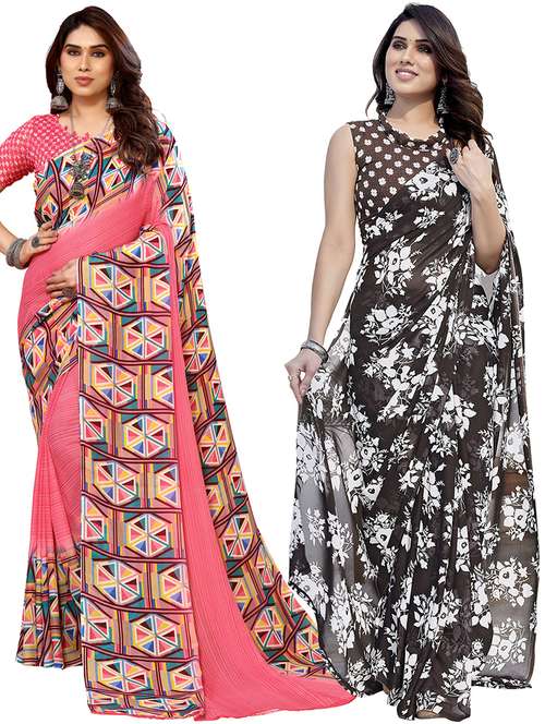 pack of 2 printed casual wear sarees with blouse - 21402864 - Very Small Image - 1