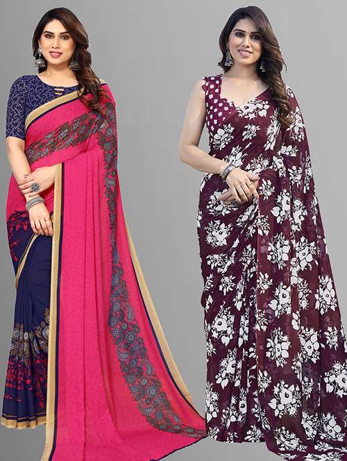 pack of 2 printed casual wear sarees with blouse
