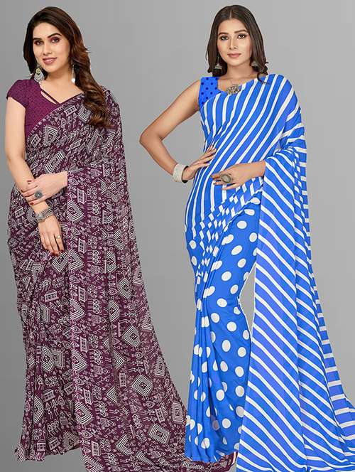 pack of 2 printed casual wear sarees with blouse - 21402878 - Very Small Image - 1