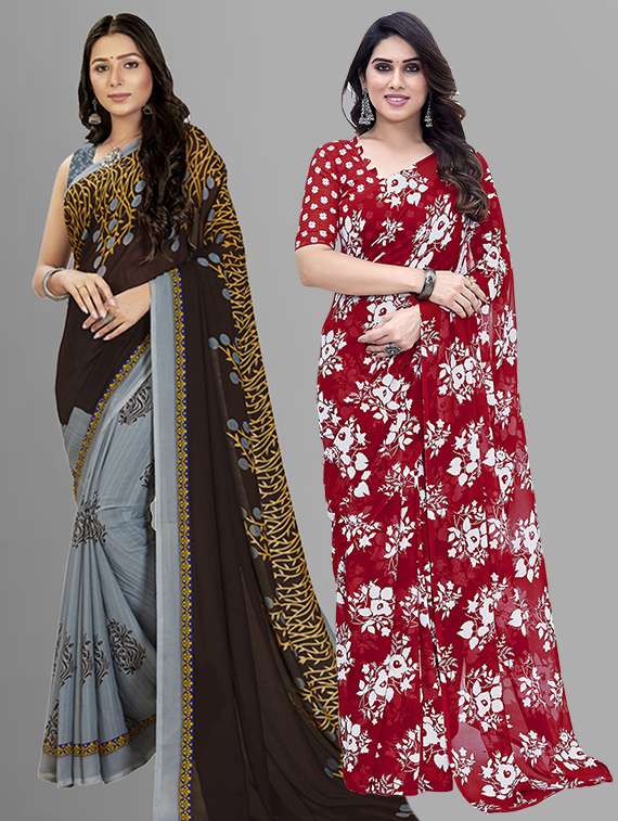 pack of 2 casual wear combo sarees with blouse - 21402887 - Very Small Image - 1