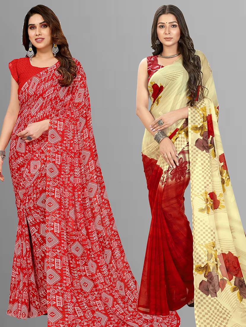 pack of 2 casual wear combo sarees with blouse