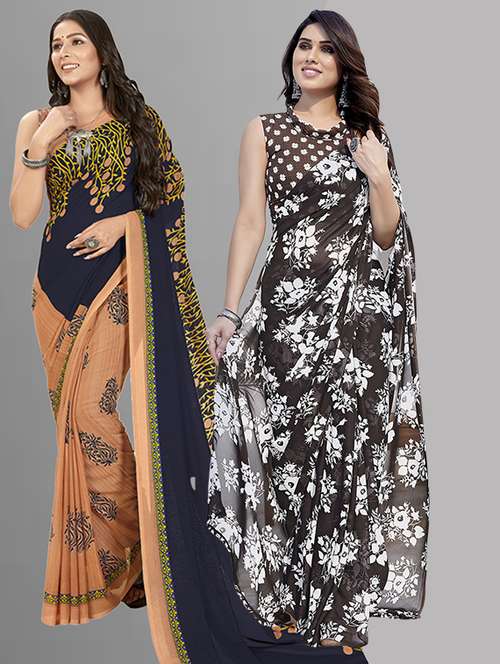pack of 2 printed casual wear sarees with blouse - 21402914 - Very Small Image - 1