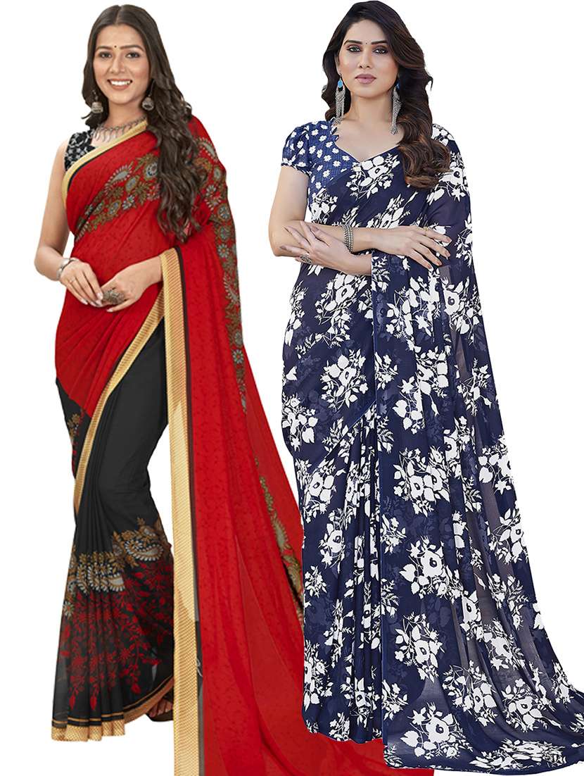 pack of 2 printed casual wear sarees with blouse - 21402924 - Very Small Image - 1