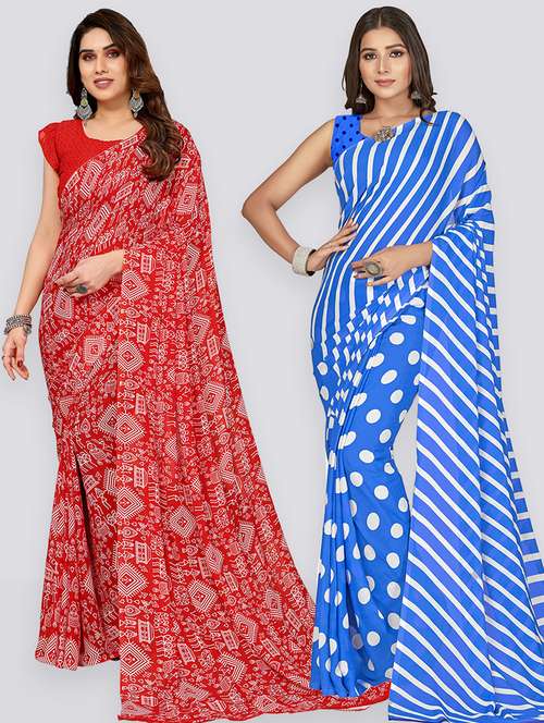 pack of 2 printed casual wear sarees with blouse