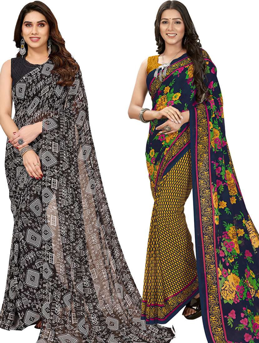 pack of 2 printed casual wear sarees with blouse