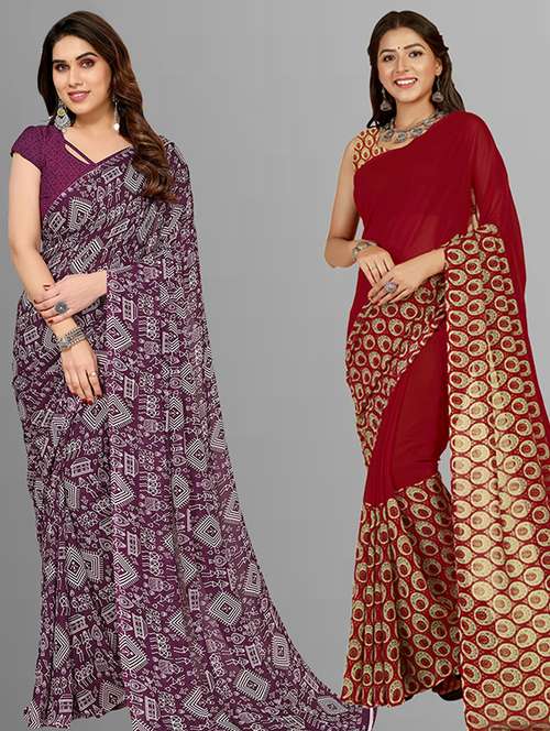 pack of 2 printed casual wear sarees with blouse