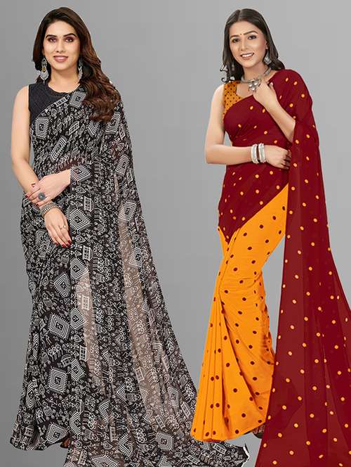 pack of 2 printed casual wear sarees with blouse - 21402979 - Very Small Image - 1