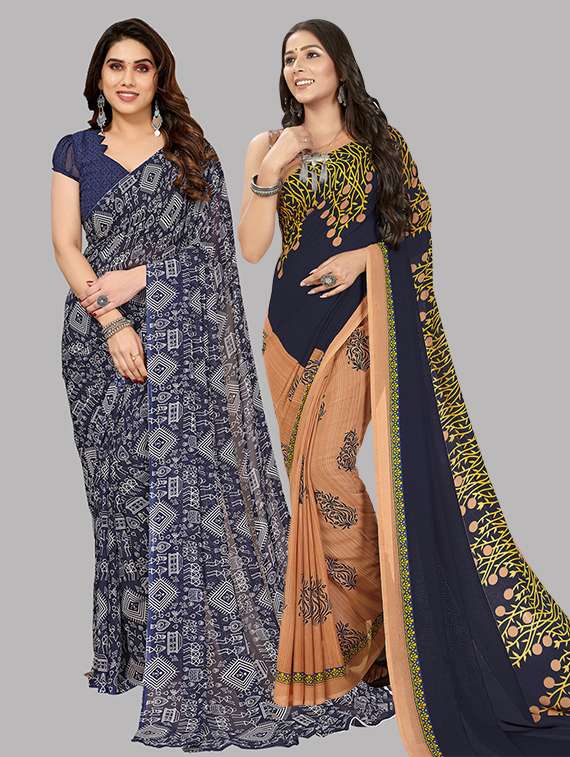 pack of 2 casual wear combo sarees with blouse - 21402981 - Very Small Image - 1
