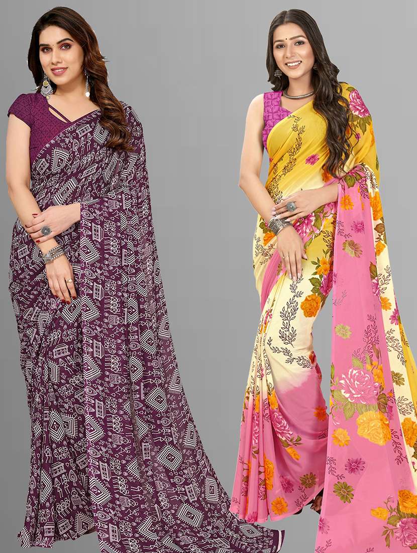 women pack of 2 casual wear combo sarees with blouse - 21403000 - Very Small Image - 1