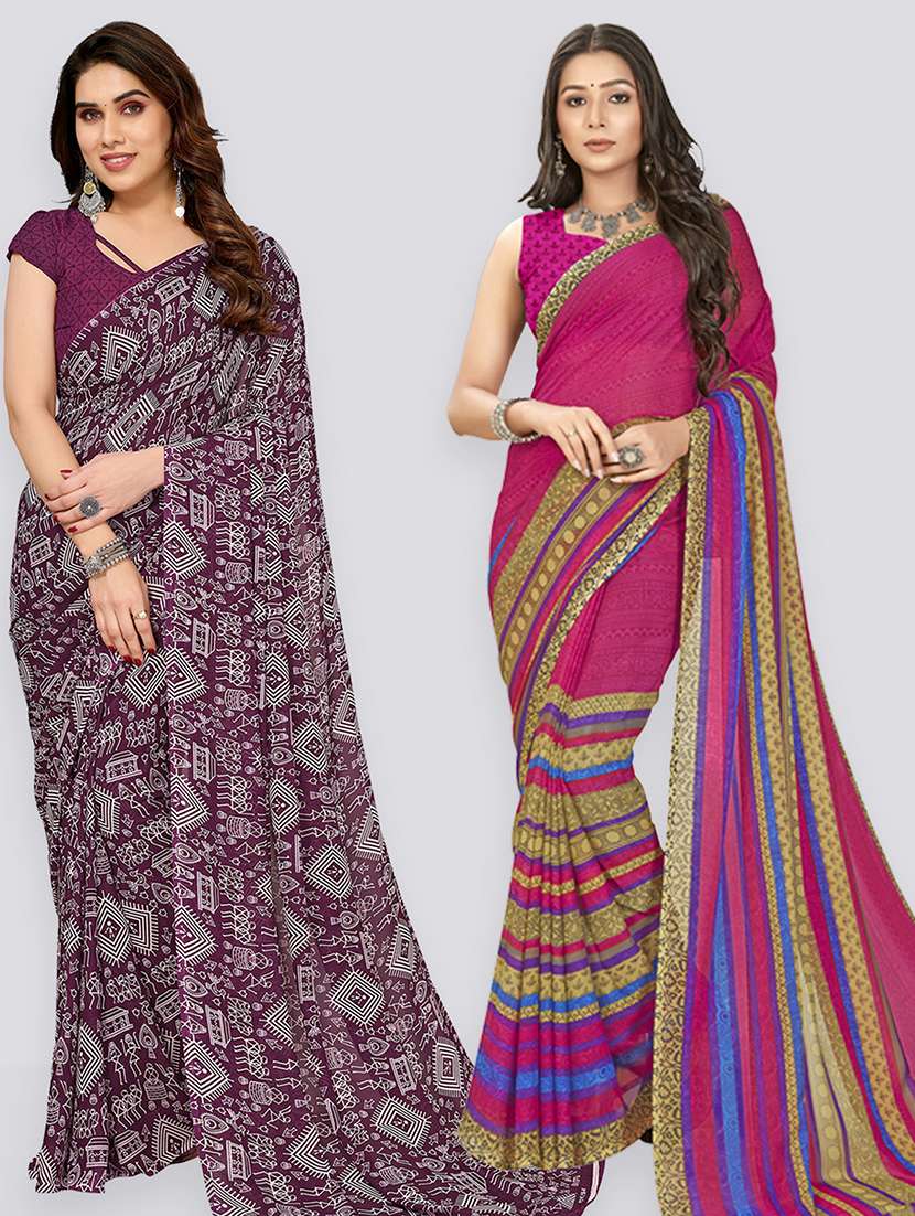 women pack of 2 casual wear combo sarees with blouse - 21403001 - Very Small Image - 1