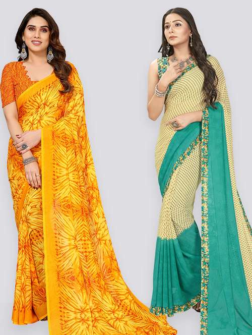 women pack of 2 casual wear combo sarees with blouse