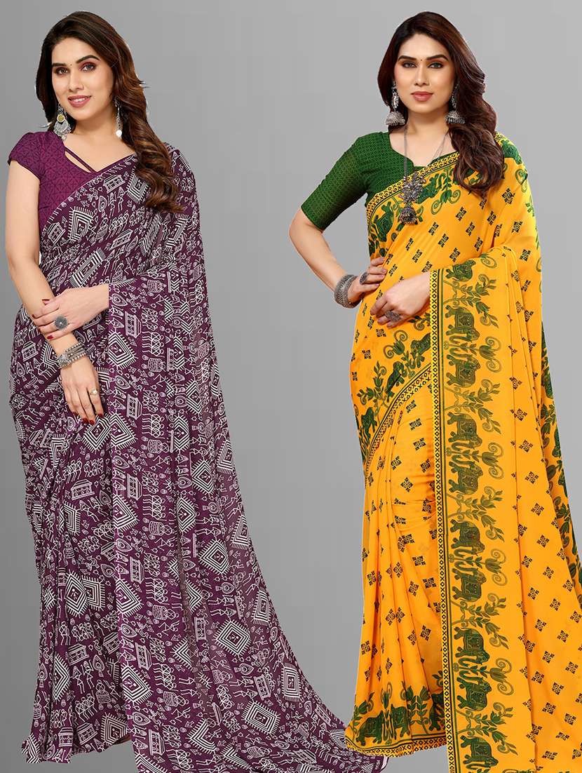 women pack of 2 casual wear combo sarees with blouse - 21403083 - Very Small Image - 1