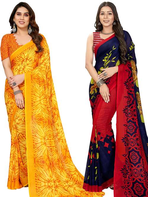 women pack of 2 casual wear combo sarees with blouse