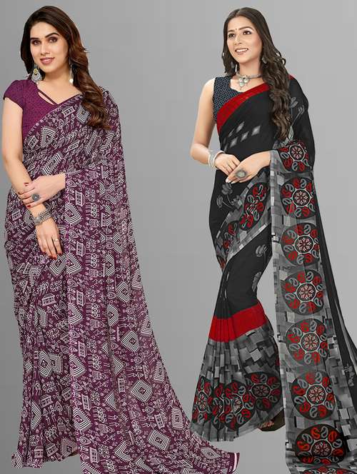 women pack of 2 casual wear combo sarees with blouse - 21403116 - Very Small Image - 1