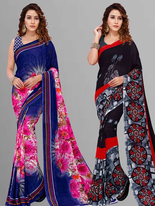 women multi color printed saree combo with blouse