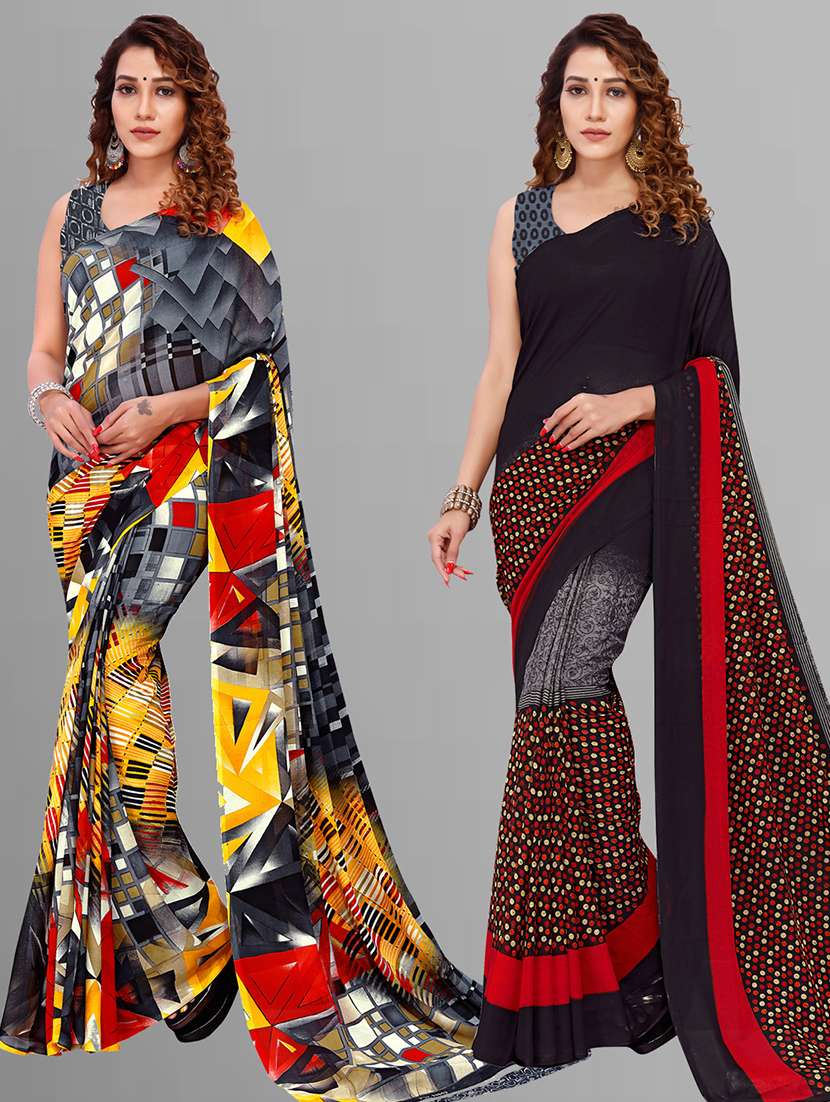 women pack of 2 printed saree with blouse - 21405535 - Very Small Image - 1